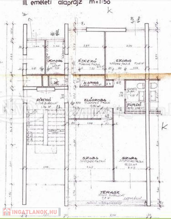 A 8 lakásos társasház a 80-as évek közepén téglából épült. Fűtését gáz cirkó kazán biztosítja radiátorokról. A lakások K-Ny-i tájolásúak. Az egyik lakás a 3. emeleten található, kb. 80 m2-es, a tetőtéri lakás kb. 64 m2-es és tartozik hozzá egy nagy méretű, 7,8 m2-es erkély is. A két lakás egymásból megközelíthető (jelenleg).