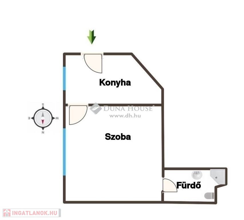 A lakás 28 nm-es, belső elosztása: