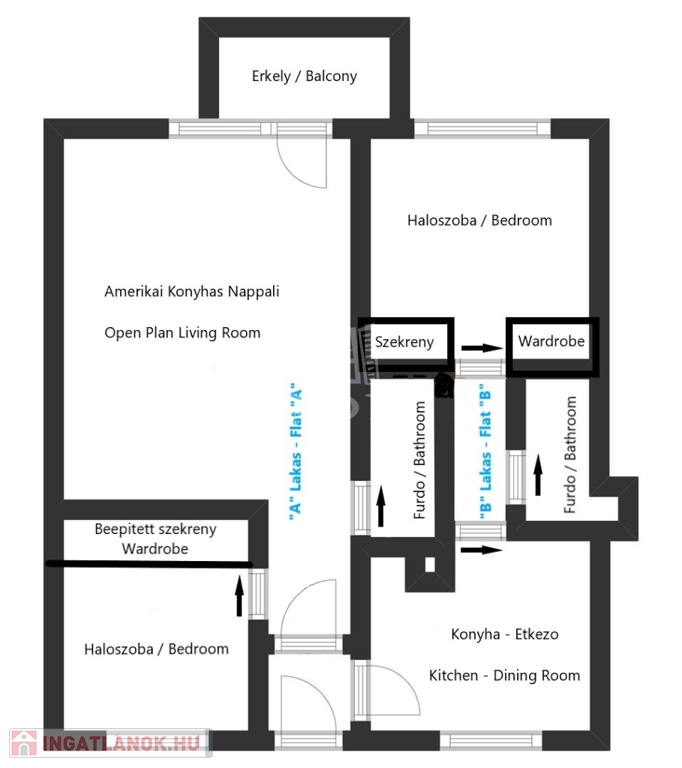 Az ingatlan két külön lakássá van alakítva, az egyik rész 27 nm-es (a másik 32 nm) ideális kiadásra, dolgozószobának vagy akár külön élő családtagnak.