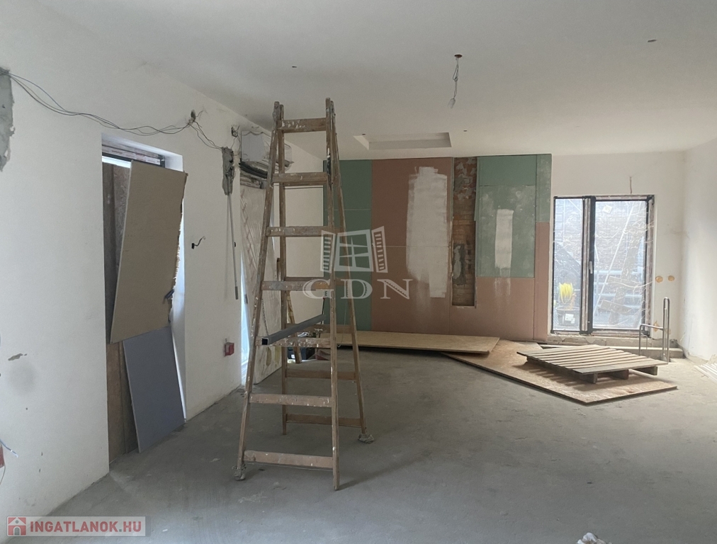 -Minden helyiség lebetonozott, végső festésre vár, szerelvényezés nélkül.