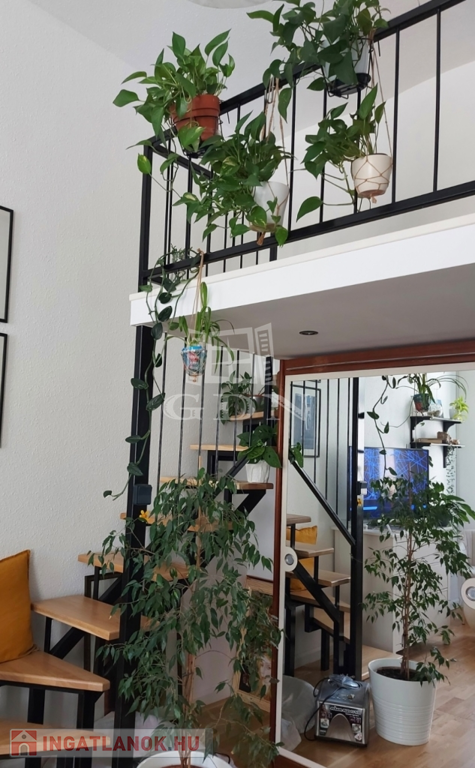 • Galéria: két különálló galériával (egy 6 m²-es tárológaléria a konyha és fürdő felett, valamint egy 6 m²-es igényes, fémvázas-tölgyfa lépcsős galéria a szobában – akár hálószobának is tökéletes)