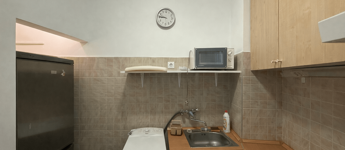 L'électroménager est inclus dans le prix : réfrigérateur, lave-linge, plaque de cuisson électrique, micro-ondes.