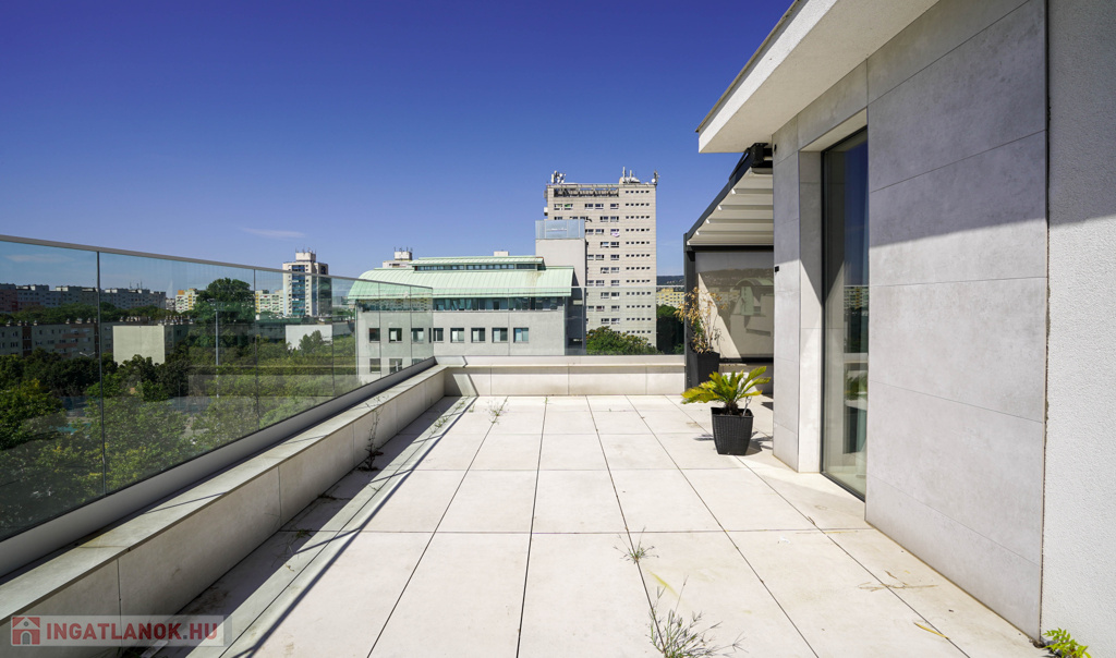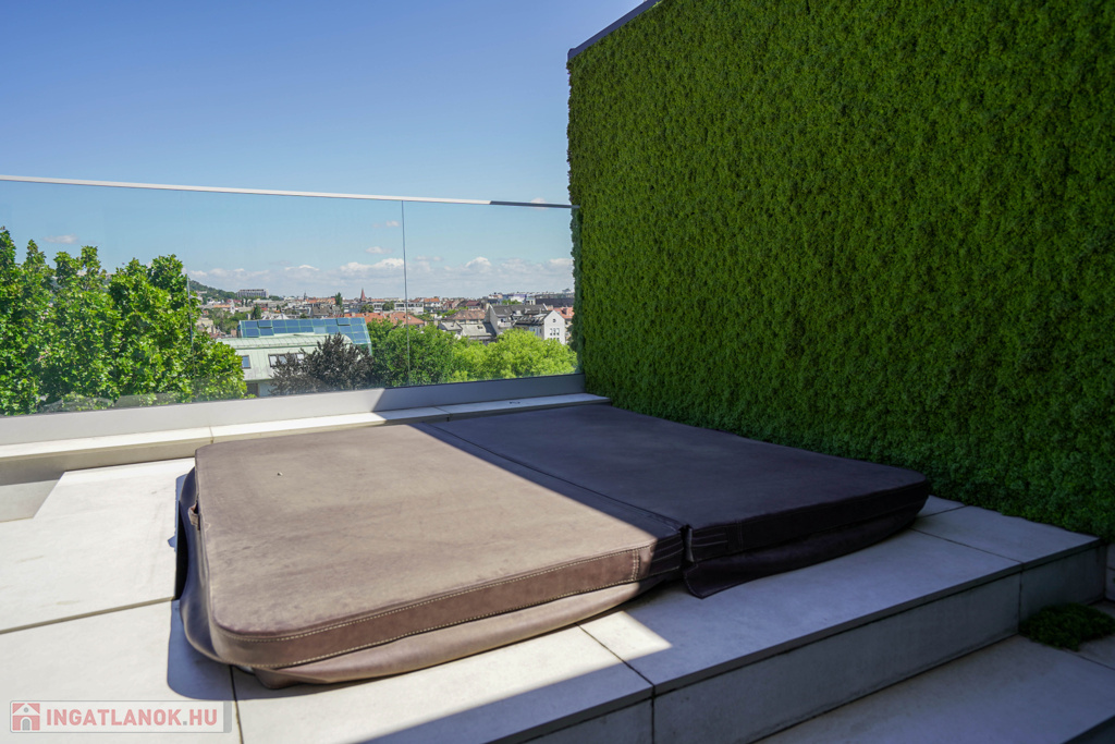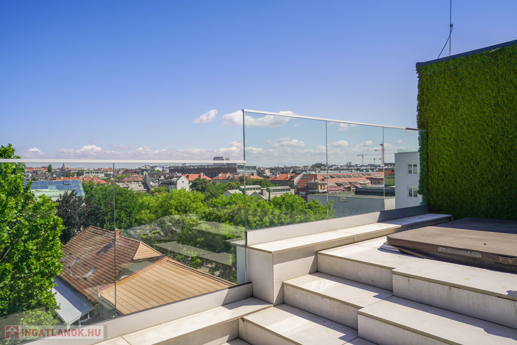 - 6. emeleti, nem tetőtéri lakás közel 80 m²-es terasszal, jakuzzival és városi panorámával.
