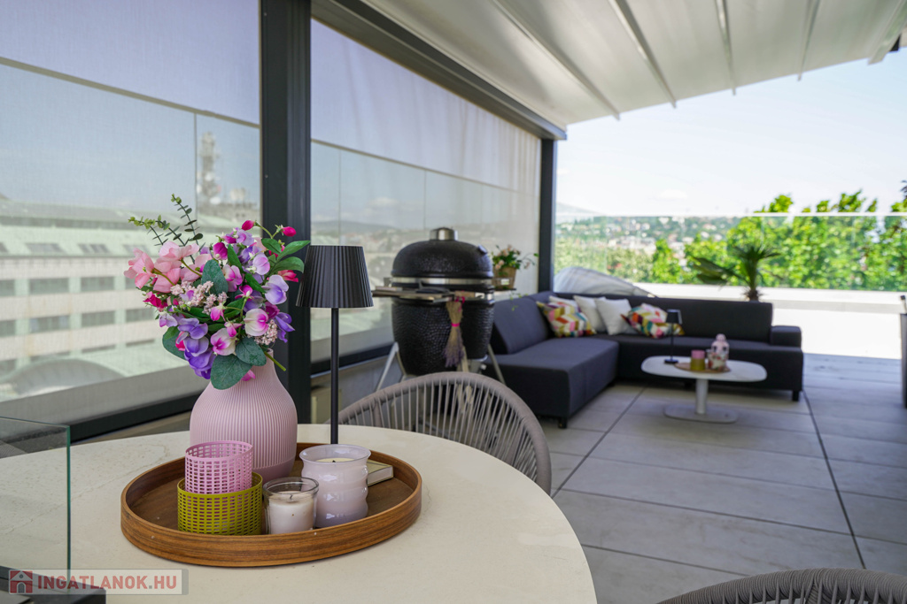 A XI. kerület kedvelt utcájában eladó egy exkluzívan felszerelt és bútorozott penthouse lakás, amely minden igényt kielégít!
