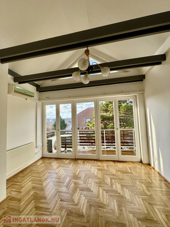 A lakás felső szintjén további három tágas hálószoba, fürdőszoba, külön wc található. Érdekessége, hogy minden hálószoba panorámás, egyik szobából a Budai várat és Sashegyet, másik szobából Budafok felé a harmadik szobából Belbuda felé gyönyörködhetünk a kilátásban.