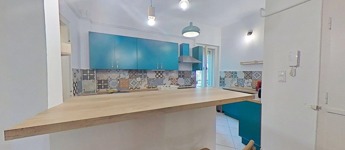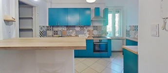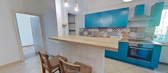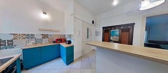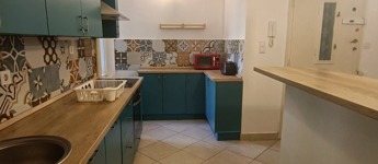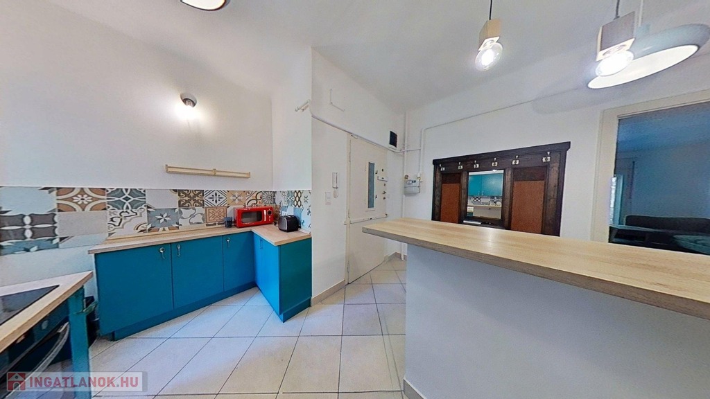 A konyha és a nappali közötti fal ki lett bontva, így a belső tér tágasabb, és világosabb lett.