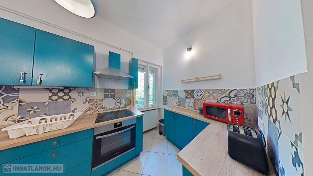 A lakáshoz tartozik a pincében 3,5 nm nagyságú zárható tároló, az épület belső udvarán közös használatban levő kertet is használhatjuk.