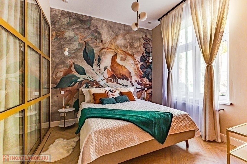 . A lakás tulajdoni lap szerint 92 nm melyet két lakássá bontottak, ennek eredménye, egy közel 75 nm, és egy 18 nm alapterületű lakás került kialakításra. Jelen hirdetésben szereplő 75 nm lakrészt kínáljuk eladásra.A lakást, a mostani tulajdonos az alapokig visszabontotta, és minden elemében megújította. Ennek köszönhetően, két hálószoba és tágas nappali került kialakításra.A terekre jellemző, hogy a mind a fő mind a második hálószoba is közel 15 nm; a fő hálószobából leválasztottak egy Gardrobe helyiséget. A nappali tágas világos, magában foglalja az étkezőt is, a konyha a tágas közlekedő részen kapott helyet, ahonnan a Fürdő és az udvari tájolású hálószoba is megközelíthető.A felújítás során magas minőségű anyagok kerültek beépítésre, mind a szaniterek, mind a nyílászárók tükrözik azt az igényességet, amelyet a Home Staging során kiválasztott bútorok és berendezési tárgyak egészítenek ki és teszik harmonikus otthonná. A lakás teljes bútorzattal, és berendezési tárgyakkal együtt megvásárolható.A házban a rövidtávú kiadást mostani tudásunk szerint a ház nem engedélyezi, a kisebbik lakrész jelen pillanatban is ki van adva hosszú távra. Igény esetén az is megvásárolható, külön megállapodás alapján.Jöjjön el nézze meg.