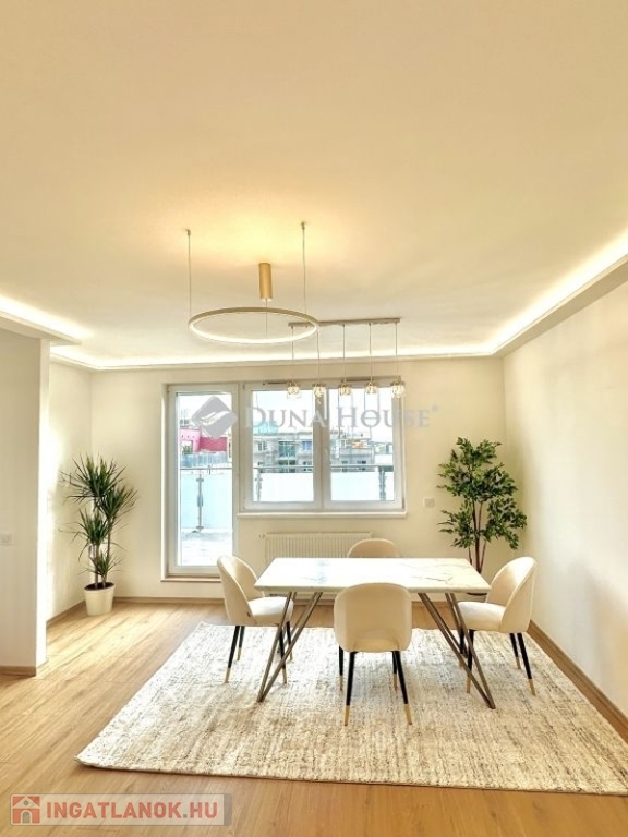 Angyalföldön! Eladó egy 5. emeleten található, nappali + 3 hálószoba + 2 fürdővel rendelkező, klimatizált lakás 44nm terasszal! Az ingatlanhoz tartozik:- 2 zárt autóbeálló: 8MFt + 8MFt értékben, valamint plusz egy liftes beálló ingyenesen- 2 tároló: 4,6MFt + 5Mft értékben (5,36nm + 5,74nm), valamint egy plusz tároló 4,3nm ingyenesen- Minden lakáshoz elegáns, porfestett acél francia erkélyes terasz- Biztonsági kaputelefon és térfigyelő kamerarendszer a lakópark területén és parkoló-, tárolószinteken- Gyorsliftek minden emeletre, még a parkoló és tárolók szintjére is- Exkluzív környezet mindössze 71 lakással- Szupermarket és orvosi rendelő a társasház közvetlen közelében- Kiváló hang- és hőszigetelő beton vázszerkezetA városi előnyök mellett a természet élményét a közelben csörgedező Rákos-patak is fokozza, mely ideális helyszíne a természet- közeli kikapcsolódásnak egy kellemes séta, vagy éppen a napi kocogás helyszíneként. Ezenfelül a partján hatalmas alapterületű, gondozott kutyafuttatók is találhatóak.Elhelyezkedésének egyik fő előnye a kerületben található intézmények sokasága. A közelben számtalan bölcsőde, óvoda, iskola és egészségügyi intézmény található. A sportoláshoz ideális helyszín az Angyalföldi sportközpont, a Dagály Fürdő és a Palatinus Strand. A szórakozást keresőknek a közelben számos színház (József Attila Színház, Vígszínház), galéria és mozi kínál kikapcsolódást. A bevásárlásra pedig a környék szupermarketjei (Lidl, Aldi, Penny Market), a kisboltok, a Váci úti Tesco, a Duna Plaza, a Lehel téri piac és az Újpesti Városközponti üzletei nyújtanak megoldást. A kertvárosi hangulat mellett a környék tömegközlekedése is kiváló. A 14-es villamos Fiastyúk utcai megállója rövid sétányira, míg a 30, 32, 20E, 30A és 230 jelű buszok megállója is pár percnyire található. A lakópark ezen felül autóval is könnyedén megközelíthető.