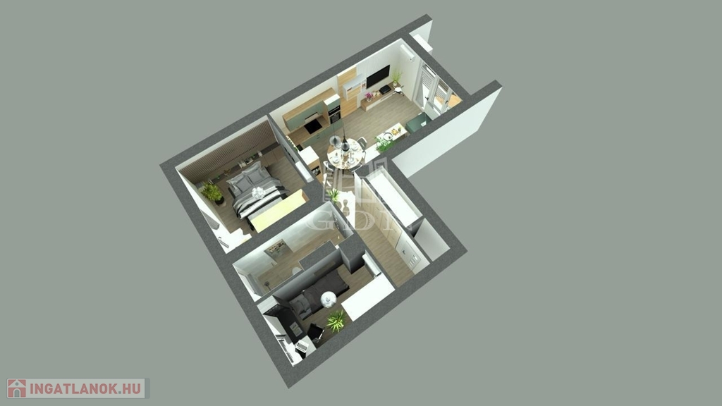 - gépesített konyha, beépített mikróval, sütővel, főzőlappal és hűtővel, szagelszívóval