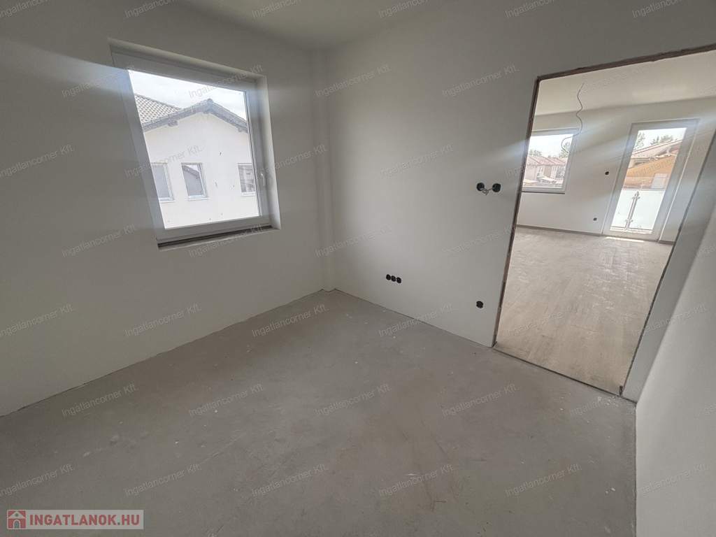 3, lakás nettó 60,77 m2 + 9,29 m2 terasz, nappali + 2 háló, 119 m2 telek, fan-coil klíma (a hálószobákban kiállás előkészítés), riasztó, kaputelefon, 2db parkoló