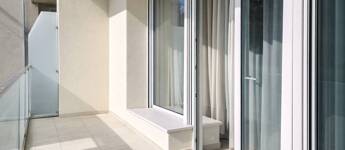 - esztétikus homlokzat, modern edzettüveg erkélykorlátok