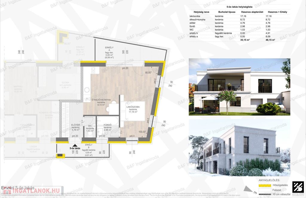 V centre mesta Hajdúszoboszló sa predáva byt s rozlohou 48,15 m2 na 1. poschodí v novostavbe bytového domu, ktorý môže byť ideálnou voľbou ako prvý domov alebo pre investorov. Výstavba nehnuteľnosti sa začala v roku 2025 a jej odovzdanie sa očakáva koncom roka 2026. Tento energeticky úsporný bytový dom je v súlade s dnešnou dobou: dokonalou kombináciou udržateľnosti a moderného životného štýlu. Bytový dom bude ponúkať 5 exkluzívnych bytov, 1 parkovacie miesto vo dvore a 4 pohodlné garáže, s použitím kvalitných materiálov a moderných architektonických riešení. Úžitková plocha bytu je 35,15 m2 + k dispozícii sú 2 balkóny, z ktorých jeden má 4,91 m2 a druhý 8,09 m2. Budova poskytuje energetickú účinnosť A+, ktorá zaručuje nízke náklady na údržbu a ekologické riešenia. Na svojich nových obyvateľov čaká praktické usporiadanie a priestranné priestory, kde je v každom byte zaručené prirodzené svetlo. Garáže patriace k budove poskytujú obyvateľom bezpečné a pohodlné parkovanie. Ďalšie 3 garáže a 3 apartmány si môžete prenajať. Cena garáží: 10 000 000 – 12 000 000 HUF. Nehnuteľnosť sa nachádza vo výbornej lokalite: len 100 metrov od známych kúpeľov Hajdúszoboszló, vďaka čomu je ideálnou voľbou na trvalé bývanie aj na investičné účely. Blízkosť kúpeľov zaručuje vysoký potenciál prenájmu a stály dopyt. Úžitková plocha apartmánu je 48,15 m2, má 1 priestrannú svetlú izbu, obývaciu izbu s americkou kuchyňou a dvojitý balkón. Apartmán je nezariadený, takže máte možnosť si ho zariadiť podľa vlastného vkusu a vytvoriť si tak skutočne útulnú atmosféru. Cena apartmánu je 53 990 000 HUF, čo je v takejto frekventovanej lokalite a na nehnuteľnosť vo výbornom stave výhodná možnosť. Nenechajte si ujsť túto skvelú ponuku a chyťte sa na vlastný domov v srdci Hajdúszoboszló!