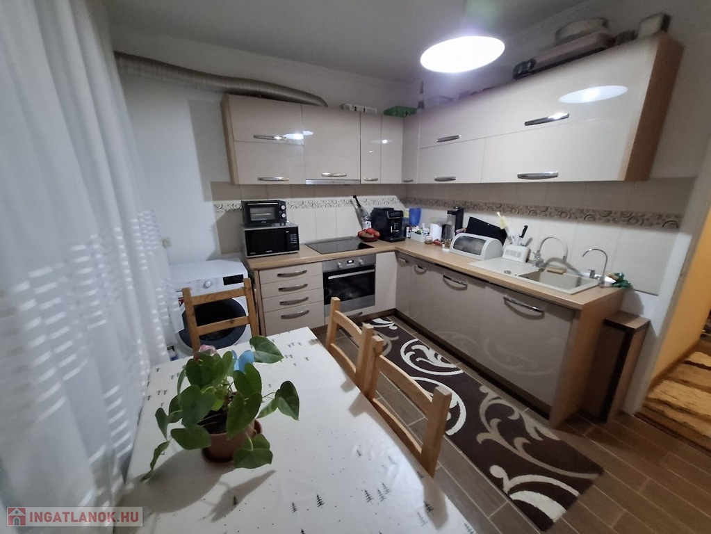 Hajdúszoboszlón Major utcán eladó egy 1 emeleti, 65 nm,3 szobás nagy ebédlőkonyhás, erkélyes, teljes körűen felújított szép lakás.A konyha és folyosó járólapos,a szobák laminált parkettásak és külön nyílnak.A fűtést távfűtés biztosítja állandó meleggel.Magasfényű konyhaszekrény került beépítésre,beépített gépekkel mosogatógéppel,sütővel.A nagy nappaliban felszerelésre került egy hűtő-fűtő klíma is.A fürdőszoba és wc külön helyezkedik el egymástól.A fürdőszoba teljes felújítást kapott új csempével,vízszereléssel és szaniterekkel.A folyosón teljesen új beépített szekrény került felrakásra, ami tárolásra és gardróbnak is kiválóan alkalmas.Új több ponton záródó fém bejárati ajtó került beépítésre.Kiváló elosztás,tágas világos jól élhető lakás jó szomszédokkal.A lakás parkra néző.Tiszta rendes lépcsőház jellemzi,közös tárolóval.Közelben boltok,piac,orvosi rendelő,Spar,fürdő,buszmegálló.Érdemes megnézni.Bármikor megtekinthető időpont egyeztetéssel.További ingatlanjaink a Teleingatlan oldalán több nyelven is hitel ügyintézéssel és ügyvédi segítségnyújtással egybekötve.Az ár irányár.