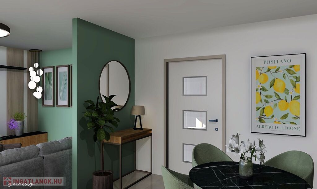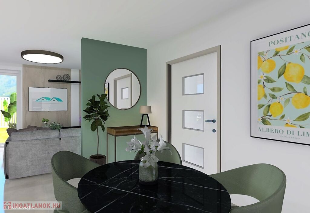 - Gealan típusú, 3 rétegű üveggel ellátott, kívül antracir, belül fehér hőszigetelt ablakok redőny előkészítéssel, , Igényes, hőszigetelt bejárati ajtó