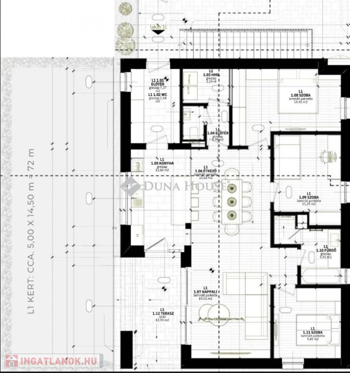 Új építésű lakások Kozármislenyben!Elhelyezkedés: A lakópark északi és keleti szomszédságában társasházak, és családi házak, déli oldalán erdős terület, nyugati oldalán pedig szántóföld terül el.Az északi épületből ill. a déli épület felső szintjeiről a Mecsek hegyeire nyílik csodás kilátás, míg a déli társasház tökéletes harmóniát kínál a természettel.A környező utcákban új társasházak és családi házak épültek az elmúlt években, melyeket főként kisgyermekes családok laknak, ami egyedi és barátságos légkört teremt. A szomszéd utcában található egy új óvoda, ami további előny a kisgyermekes családoknak.Az úthálózat kiváló minőségű, sebességkorlátozott övezet, így a gyermekek is biztonsággal kerékpározhatnak a környéken.Épületek és lakások:A lakóparkban két L alakú épület található, mindkét épületben 8 lakás. A lakások modern, energiahatékony rendszerekkel készülnek, kényelmes elrendezést kínálnak, magas minőségű anyagok felhasználásával. Minden lakáshoz díjmentesen parkolót biztosítunk, a földszinti lakások pedig külön kerttel rendelkeznek.Közös park:A lakópark közepén egy közös park kerül kialakításra, amely találkozási pontként és kikapcsolódási lehetőségként szolgál a lakók számára. Közösségi igény esetén medence és játszótér is megvalósítható erre a területre.Célközönség:Fiatal családok, akik nyugodt és természetközeli lakókörnyezetet keresnek. Olyan vásárlók, akik nagyra értékelik a modern, kényelmes otthonokat, miközben a természet közelségét is élvezhetik.Igény esetén tervezési, belsőépítészeti tanácsadás és különleges ajánlatok új lakásvásárlók számára.