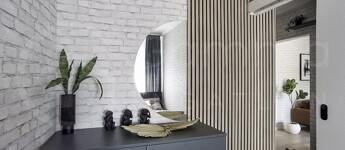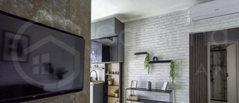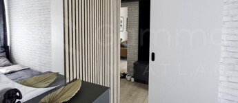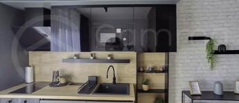 Tervezés: Lakberendező által optimalizált térkihasználás, modern 1,5 szobás elosztás (amerikai konyhás nappali + háló).
