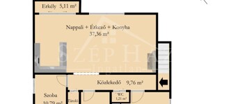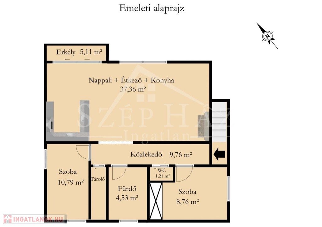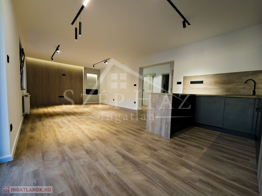 A modern elrendezés – amerikai konyhás nappali, két hálószoba, külön fürdő és WC – praktikus, tágas életteret kínál.