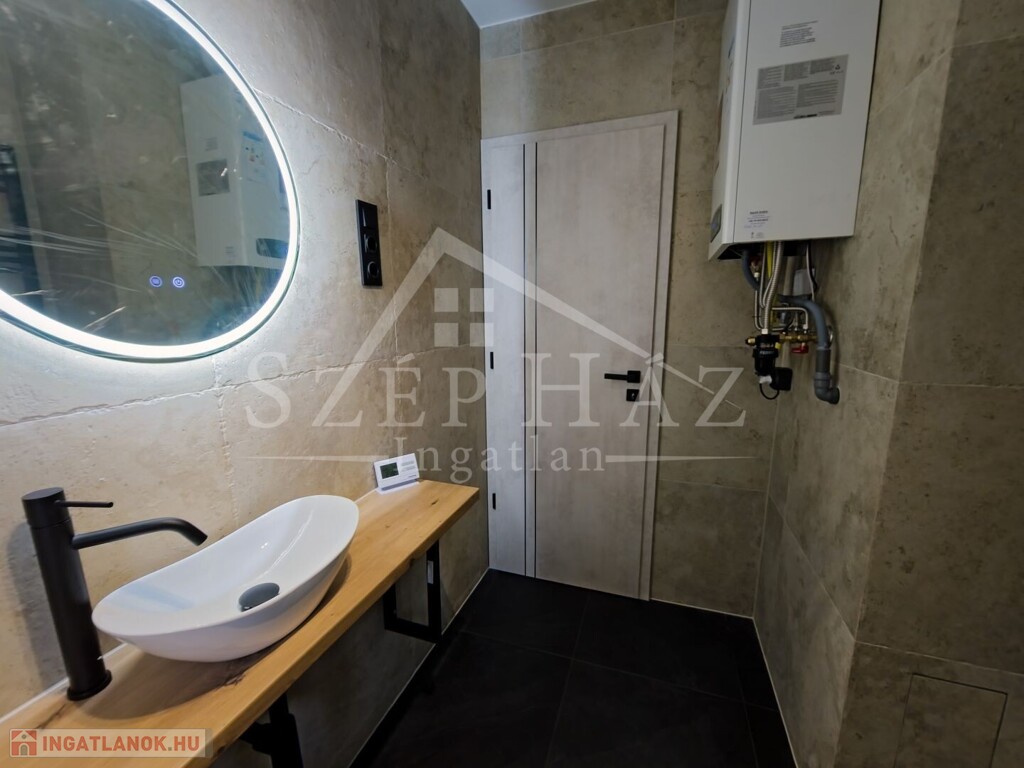 A felújítás során minden megújult: új elrendezés, modern gépesített konyha, hűtő-fűtő klíma, valamint saját garázs és kertkapcsolat teszi teljessé az otthont.