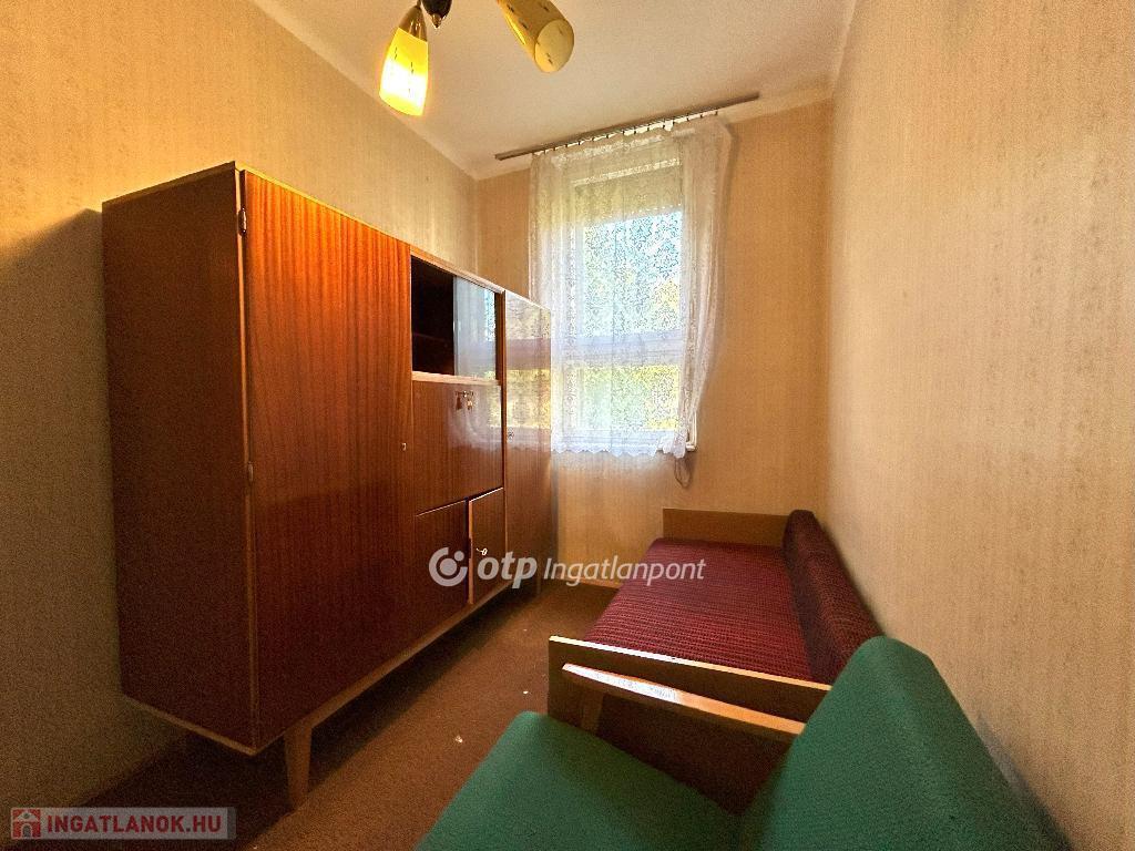 A lakás belső tere felújítást igényel, ugyanakkor a fürdőszoba már korszerűsítve lett: új csempeburkolattal és zuhanytálcás kialakítással rendelkezik. A WC külön helyiségben található. Az előszobában egy beépített szekrény biztosít praktikus tárolási lehetőséget, amely ugyan a régebbi évek stílusát idézi, de jól használható. Az ablakok a kertre néznek, így az ingatlan nem utcafrontra nyílik, ami kellemesen csendes környezetet biztosít.
