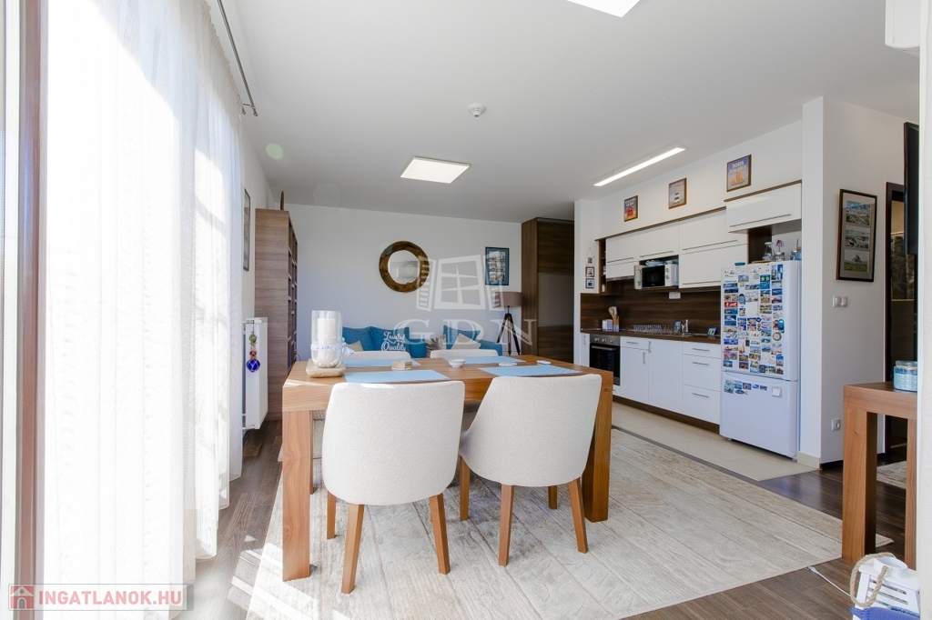 A 11 m²-es erkélyről egy pohár bor mellett élvezheted a naplementét, míg a társasházban található két kültéri medence gondoskodik a nyári felfrissülésről. Ha inkább a természetes vízre vágysz, a Balaton mindössze pár lépésnyire vár.