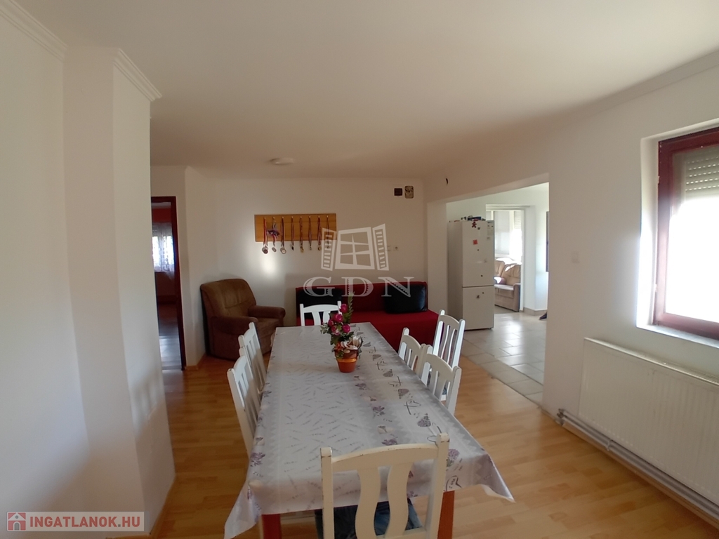 A családi ház 2005-ben épült tégla falazatú, szigetelt, 100m2-es alapterülettel. Az ingatlanban kialakításra került tágas előszoba, 3 hálószoba, konyha, ebédlő, nappali és fürdőszoba. A lakótérből megközelíthető a garázs, ahol a kazánház is helyet kapott. Az ivóvizet, saját fúrt kút biztosítja, amely bevizsgált, jó minőségű.