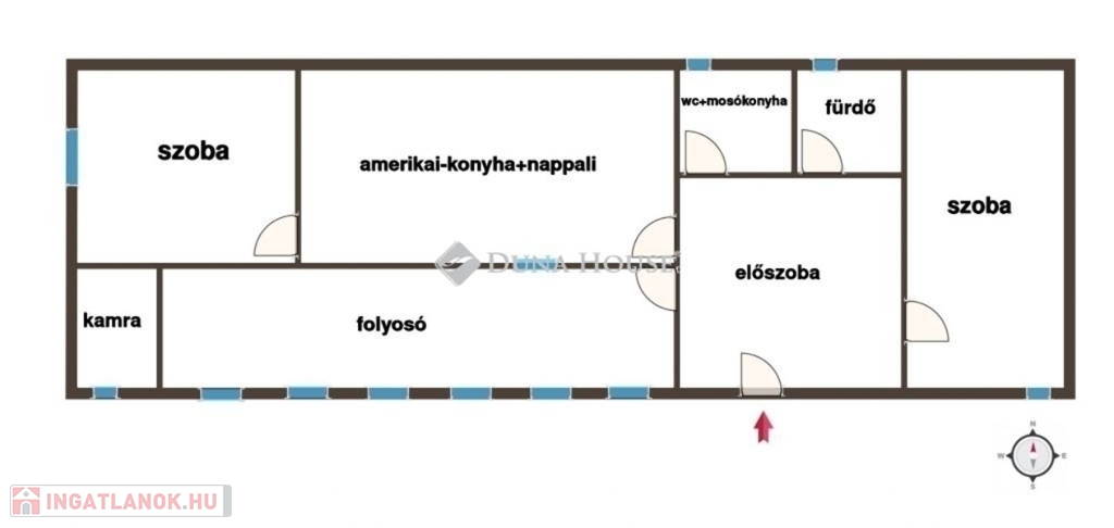 Elosztása: 2szoba+amerikai konyha-nappali.