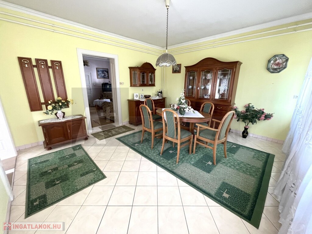 A fő épület :70-es években épült" kádár kocka " típus családi ház , jól karban tartott ,jó állapotú, tipikus elrendezésű , 3 napfényes szoba és nappali , fürdőszoba ....a konyha , régi szokás szerint , nem került kialakításra, a fő épületben , de a lehetőség adott.