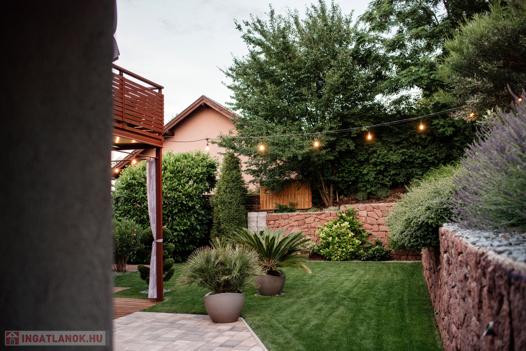 • Gondozott kert automata öntözőrendszerrel, buja növényzettel