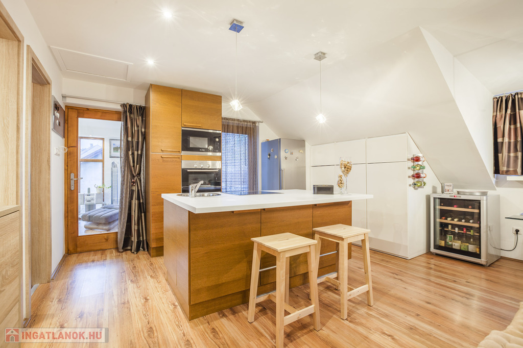 • 2 hálószoba + amerikai konyhás nappali + kandalló