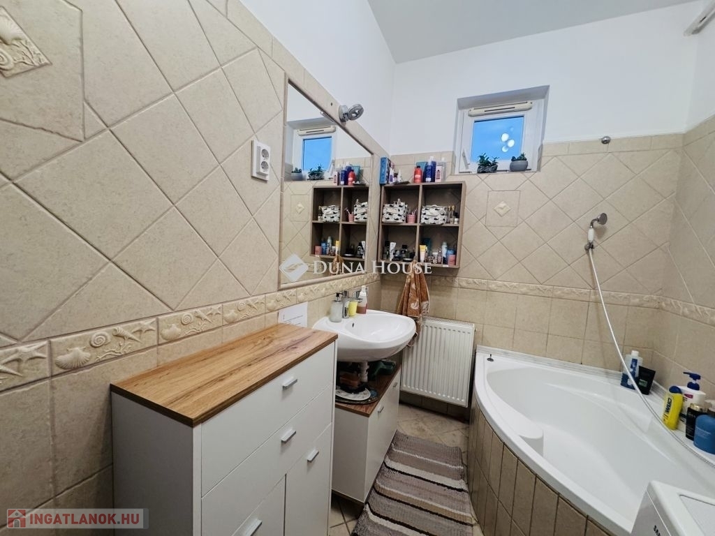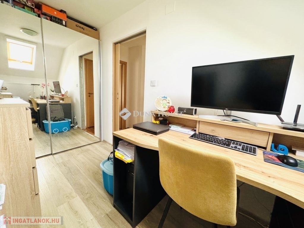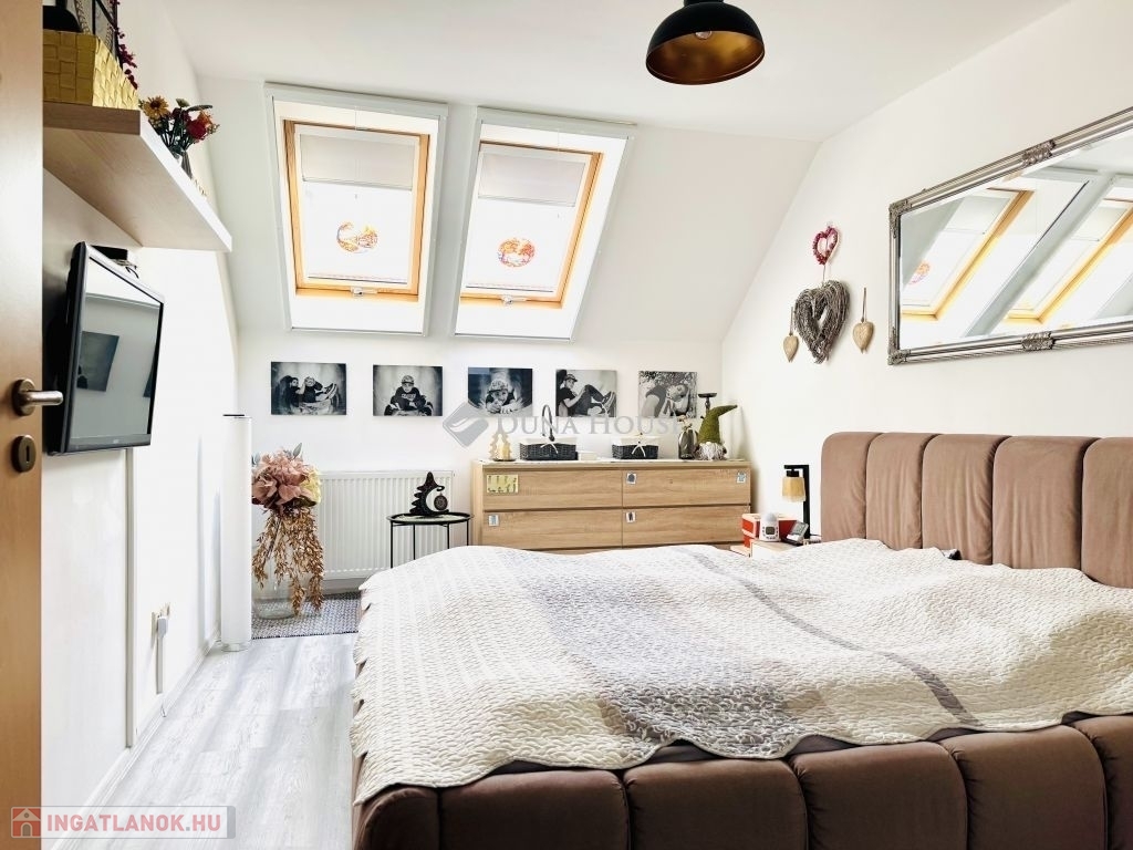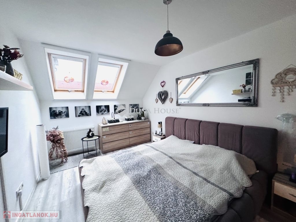 Pécstől mindössze 10 km-re, Bogádon eladó egy igényesen felújított, belső kétszintes sorházi lakás.Az ingatlan amerikai konyhás nappalival, három hálószobával, fürdőszobával és külön WC-vel rendelkezik.Főbb jellemzők:A lakás 4 évvel ezelőtt teljeskörű felújításon esett át, mely kiterjedt:a nyílászárók cseréjére (redőnnyel és szúnyoghálóval felszerelve),új kondenzációs gázkazán beépítésére,teljes víz- és villamoshálózat korszerűsítésére.A tető 20 cm-es szigetelést kapott.A rezsi rendkívül kedvező: a téli fűtés átalány mindössze 7 000 Ft.A lakáshoz kb. 50 m² saját kertkapcsolat tartozik.A parkolás saját kocsibeállón megoldott.A ház mellett található még egy praktikus fa melléképület, amely tárolóként vagy egyéb célra kiválóan használható.A környék csendes, rendezett, nagyon jó lakóközösséggel.A sorházak előtt egy vadiúj játszótér található, amely egy éve épült.Bogád infrastruktúrája kiváló: a közelben iskola, óvoda és kisbolt is rendelkezésre áll