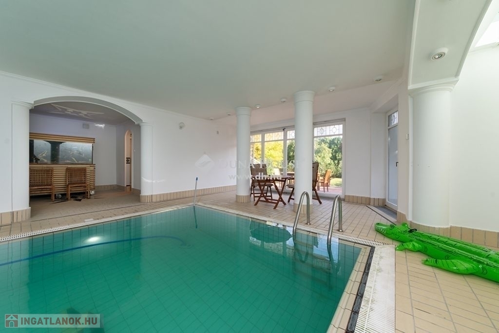 BUDALIGET KÖZKEDVELT RÉSZÉN, PANORÁMÁS, MEDENCÉS, HÁROM GENERÁCIÓS VILLA!!Budapest II kerület Budaliget városrészben, a Francia iskola közelében, a Remetehegy oldalában teraszosan beépített telken, az 1990-es években klasszikus stílusban épült, kitűnően karbantartott, a Pilisi hegyekre örök panorámás villaépület eladó.Az épület nettó 507 m2 , bruttó 650 nm alapterületű 4+2 (tetőtér, gépház) szintes, a hozzá tartozó telek 660 m2 (19mx 35m,). A villaépület tagozódása a következő:Az utca szinten levő előkertből nyíló földszinten található a bejárat, közlekedő,egy dolgozószoba, egy hálószoba, fürdőszoba és külön WC-mosdó, egyszalon és egy könyvtárszoba erkéllyel. Gyönyörű faragott fa lépcső köti össze a ház É-Ny-i sarkában a teljesen szeparálható emeleteket. A földszinttől egy szinttel lejjebb található az 5 állásos garázs, a kazánház, egy előszoba, egy nappali étkező, egy konyha, egy vendég hálószoba, fürdőszoba és külön WC/mosdó.Egy szinttel még lejjebb a kert szinten wellness részleg: fűtött vízforgatós, ellenáramoltatóval felszerelt 10mx4m medence (alatta gépház szint), öltöző, tároló és fürdőszoba, teljes szélességében eltolható üvegajtókkal megnyitva a hangulatos, napos, szépen gondozott, magas tujákkal körbevett kertre. A ház teraszosan a hegyoldalra simuló beton oldala, dupla szigetelést kapott.Az emeleten Miele gépekkel felszerelt konyha étkezővel, nappali panorámás erkéllyel, három hálószoba, egy Ravak sarokkádas fürdőszoba, külön WC-mosdó.A jelenleg nem használt, Velux tetőtéri ablakokkal, víz-, és elektromos kiállással ellátott kb. 90 m2 (1.5 m feletti terület) tetőtér beépíthető. A ház körbenapozott, elegáns állítható fa zsalugáter ajtók és reluxák védik a naptól. Az épületben egyedi tervezésű, rendkívül dekoratív finn vörösfenyő ablakok és nyílászárók kerültek beépítésre. Mindkét konyha beépített bútorokkal, tűzhellyel, elszívóval, mosogatógéppel és hűtővel felszerelt. A hálószobákban és egyéb helyiségekben beépített szekrénye segíti a tárolást.A ház nagy részében padlófűtés van, míg a hálószobákban radiátorok biztosítják a meleget. A helyiségek burkolata funkciójuknak megfelelően változatos, faparketta, szalagparketta, kő, csempe és szőnyegpadló egyaránt megtalálható. A teraszok kültéri járólappal burkoltak. A házban továbbá központi porszívó, kiépített vízlágyító rendszer, kiépített riasztó és wi-fi rendszer került beépítésre. A kert parkosított, öntözőrendszerrel ellátott. Az ingatlanban elektromos kapu és elektromos garázsajtó üzemel.Közlekedése kiváló, a Hűvösvölgyi villamos végállomás és P+R 5 perc alatt, SzéllKálmán tér 25 perc alatt elérhető. Buszmegálló 5 perc séta. HÜVI Bevásárlóközpont,LIDL, SPAR,,TECO-Express, posta, gyógyszertár, óvodák, bölcsődék, iskolák mind megtalálhatók a közelben. Csendes, nyugodt zöldövezet, távol a város zajától, de mégis közel mindenhez. Az ingatlan kitűnő elhelyezkedése végett kiváló befektetés, a szintek szeparálhatósága miatt pedig kiválóan alkalmas több generációnak és követségei rezidenciának is.In Budapest II district, Budaliget area, near the French school, on a terraced plot onthe side of Remete Hill, a well-maintained villa , built in classical style in the 1990s,with an eternal panoramic view of the Pilisi Mountains is for sale.The building has a net floor area of 507 m2 (without the attic and engine room), agross floor area of 650 m2, 4 + 2 (attic, engine room) floors, the plot is 660 m2 (19mx35m,). The division of the building is as follows: On the ground floor, which opens from the front garden on the street level, there isan entrance, a corridor, a study, a bedroom, a bathroom and a separate toilet, alounge and a library room with a balcony. A beautiful carved wooden staircaseconnects the fully separable floors in the north-west corner of the house. One level below the ground floor is the 5-car garage, the boiler room, an entrancehall, a living-dining room, a kitchen, a guest bedroom, a bathroom and a separatetoilet / sink.One level further down on the garden level wellness area: heated, circulating,counter-current equipped 10mx4m pool (with engine room a further level down),dressing room, storage and bathroom, opening with full width sliding glass doors ontothe cosy, sunny, well-kept garden surrounded by high thuja bushes for privacy. Theterraced house rolls down on the hillside built on a concrete base with doubleinsulation.Upstairs Miele kitchen with dining area, living room with panoramic balcony, threebedrooms, a bathroom with Ravak corner bath, separate toilet.The currently unused approx. 90m2 attic with fitted Velux attic-windows, water andelectric outlet, needs internal cladding.The house is very bright, surrounded by elegant adjustable wooden shutter doorsand blinds to protect from the sun. The building has uniquely designed, highlydecorative Finnish larch windows and doors.Both kitchens have built-in furniture, a stove, extractor, dishwasher and refrigerator.Built-in wardrobes in bedrooms and other rooms help with storage.Most of the house has underfloor heating, while the bedrooms have radiators. Thefloor covering of the rooms is varied according to their function, wood parquet, stripparquet, stone, tile and carpet floor can all be found. The terraces are covered withoutdoor tiles.The house also has a central vacuum cleaner, a built-in water softening system, analarm and a wi-fi system. The garden is landscaped and equipped with an irrigationsystem. The property has an electric gate and an electric garage door.Great transport: Hűvösvölgy tram terminal and P + R can be reached in 5 minutes,Széll Kálmán square in 25 minutes. Bus stop 5 minutes walk. HÜVI Shopping Center,LIDL, S