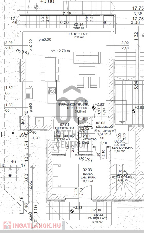 Bruttó alapterülete teraszokkal együtt 206 nm. A lakás nettó alapterülete 146 nm, összesen 3 szinten.