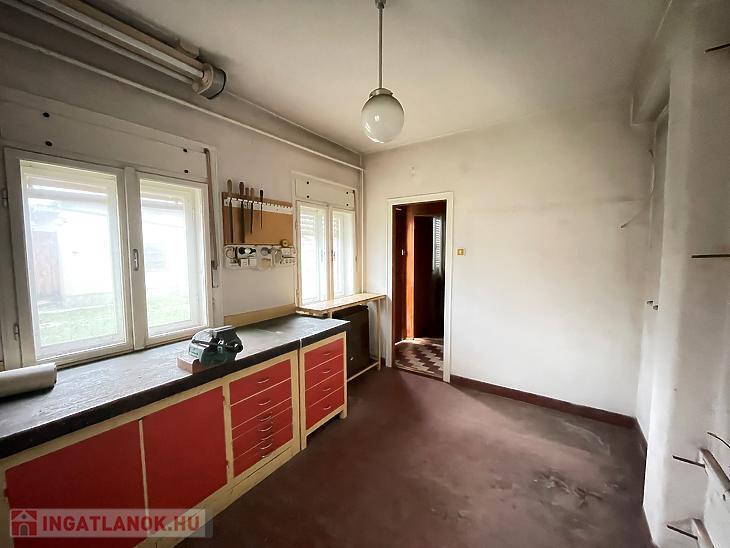 Nettó 77,3nm-es, 2szoba, előszoba, közlekedő, konyha, fürdőszoba + wc helyiségekből áll, illetve az előszobából nyílik egy 8,92nm-es TERASZ is. A ház alatt található egy kb. 10nm-es pince, ami a kamrából közelíthető meg, a padlásfeljáró is itt található. Tetőtere beépíthető, mivel beton födémes, a tető váza pedig vas szerkezetű, zsindely borítással.