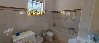 A pince nagy és száraz. A háznak van garázsa is és 15m fedett autóbeálló része is.