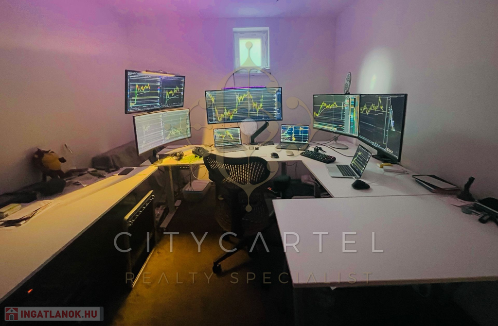 Az alsó szinten egy 2 állásos garázs és egy hangszigetelt stúdiószoba található, ami ideális hobbiszobának vagy irodának.