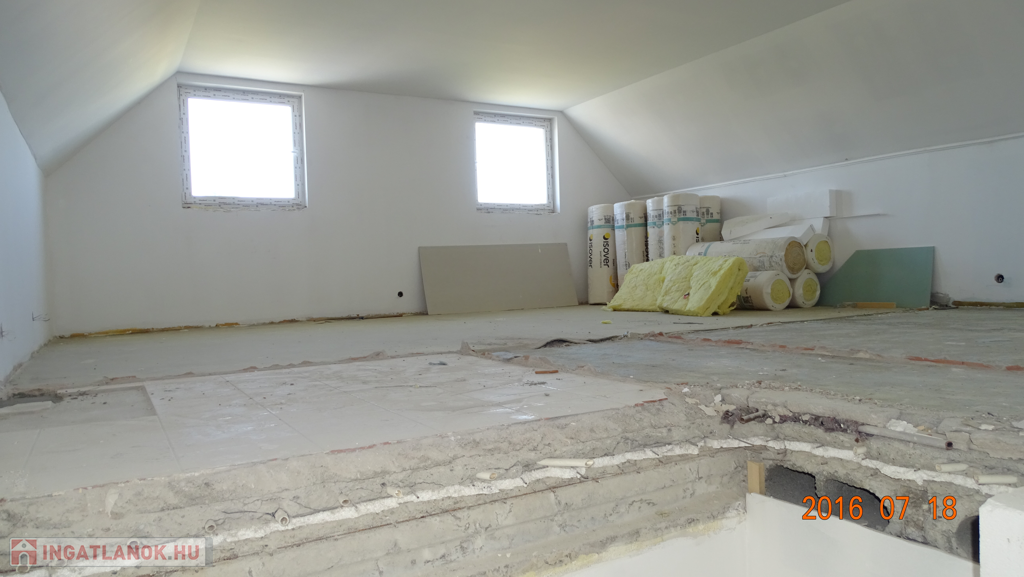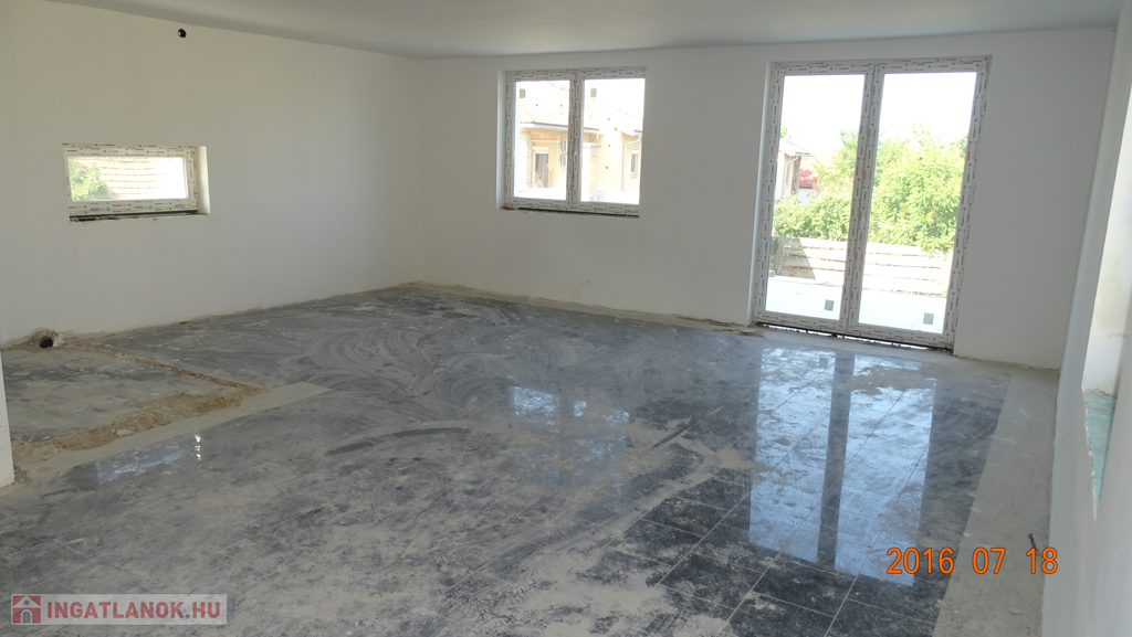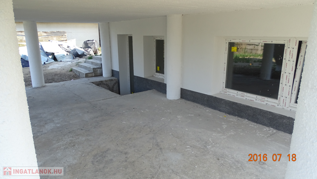 Jelenleg kb. 75%-os készültségi állapotban van. Kívülről 15 cm-es dryvit EPS hőszigetelést, festést kap és korlátok kerülnek felszerelésre. Az összes ajtó és a háromrétegű nyílászárók újak.