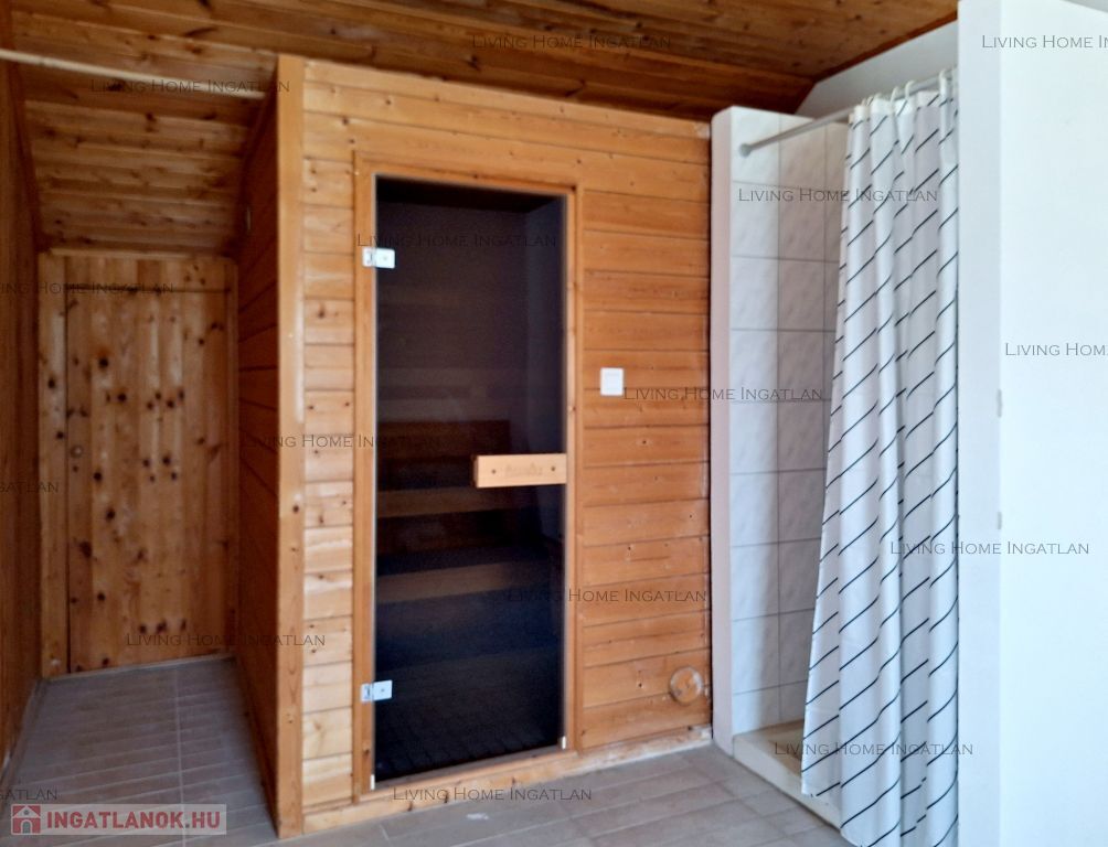 Az emeleten nappali és két hálószoba, melyekből ki lehet jutni az erkélyre, illetve gardrób és fürdőszoba. Kialakításra került egy wellness helyiség szaunával, zuhanyzóval.