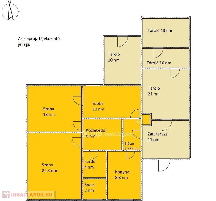 A ház jelenleg 79 nm gázcirkóval fűtött, 3 szobás, de építettek mellé egy 54 nm-es külön bejárattal rendelkező lakrészt, ami jelenleg tárolóként funkcionál, teljes felújításra szorul.