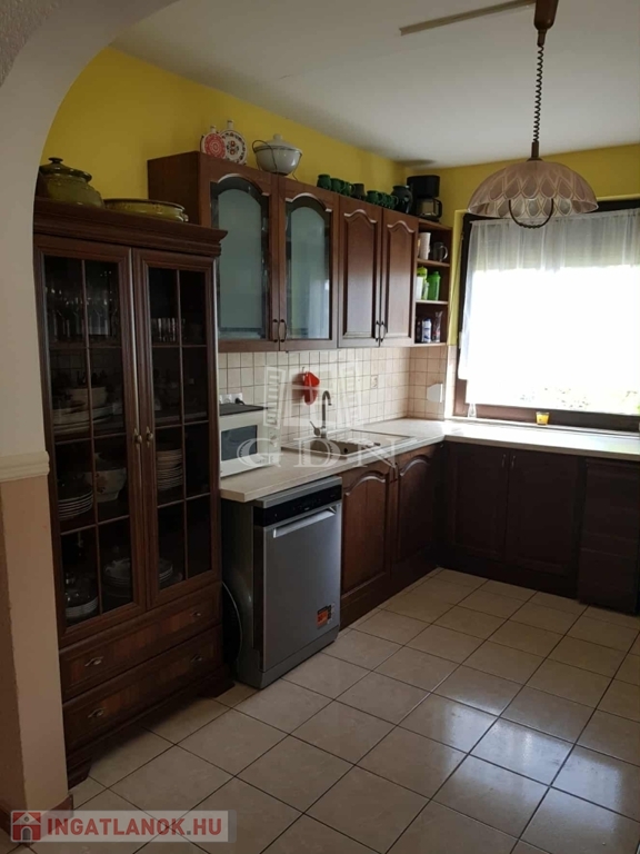 1 nagy nappali-etkező, tágas konyha, 2 haló, télikert fürdő és WC.