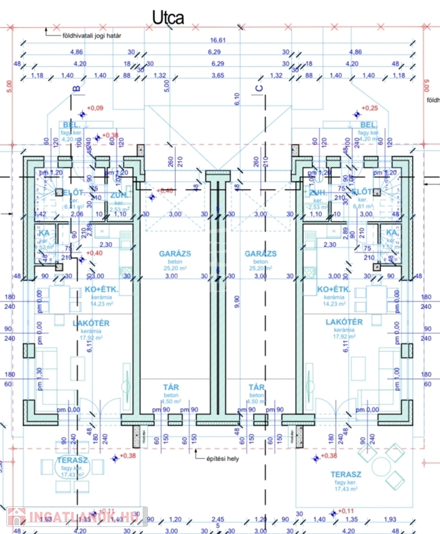 • garázs + 17 m² terasz + 8 m² erkély