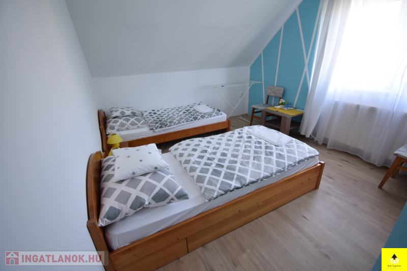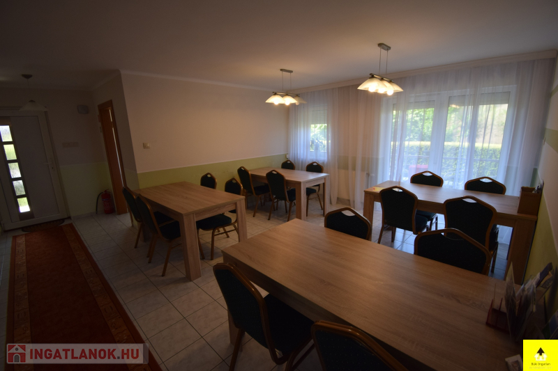 Bükön az Alsó-Büki városrészen kiváló állapotú 10 szobás, 540m2 alapterületű 3 szintes apartmanház-csádi ház eladó. Az alsó szint egy külön kiépített lakrész, a felső két emeleten pedig panzió üzemel. A házban 10 hálószoba van ,amelyből 8 felújításra került és 11 fürdőszoba van. Az ingatlan kiváló műszaki és szerkezeti állapotban van, téglából épült, fedése Bramac cserép. A fűtést kondenzációs gázkazán biztosítja, nyílászárói hőszigeteltek.