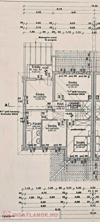 Az emeleten egy kényelmes méretű fürdőszoba, közlekedő és négy praktikus elrendezésű szoba kapott helyet. Kedvező tájolásának köszönhetően a helyiségek egész nap világosak.