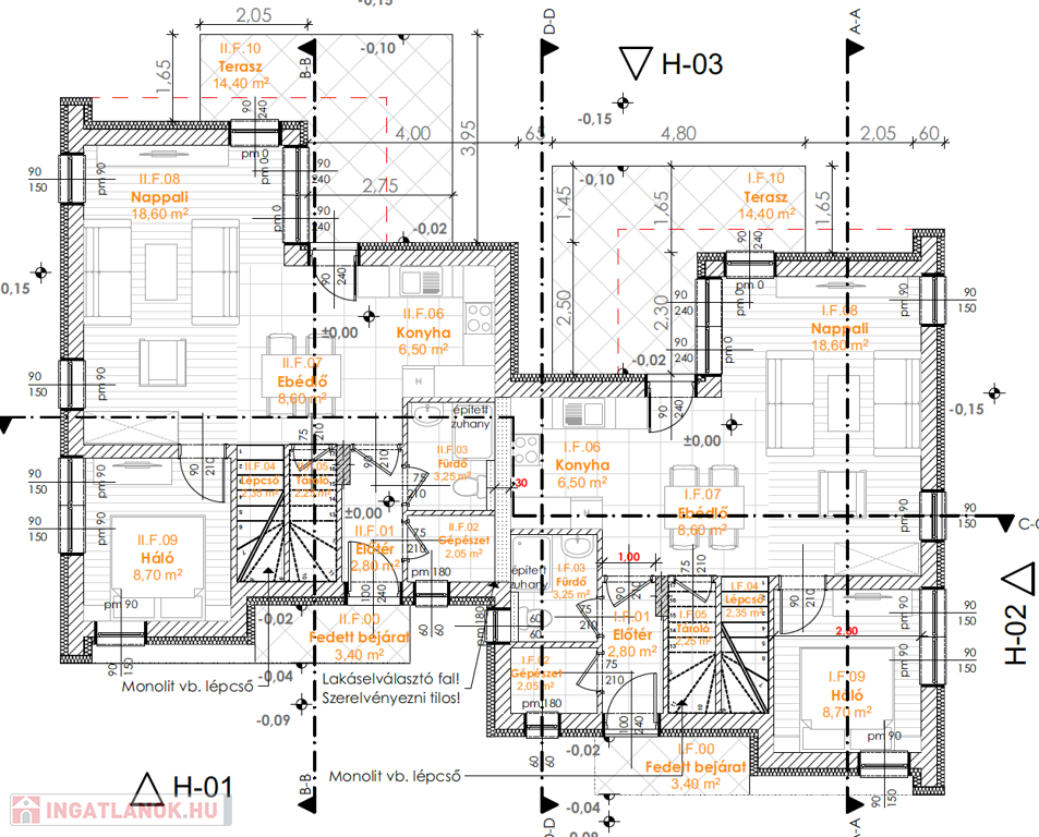 - minőségi, kezelt fa tetőszerkezet betoncserép fedéssel
