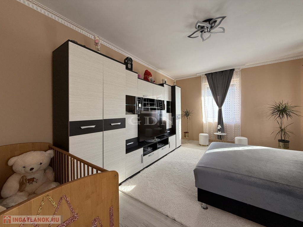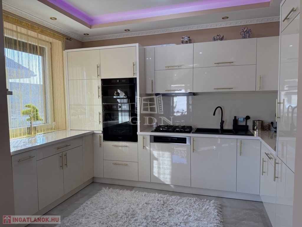 Minőségi burkolatok, beltéri ajtók, szaniterek, elektromos alumínium redőnyök szúnyoghálóval, gépesített konyha (Whirpool 6. érzék) jellemzik az ingatlant.