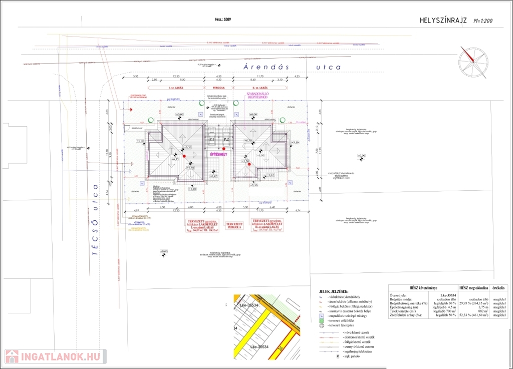 Jászberényben a Szatmáry Lakóparkban a Técső utca és az Árendás utca sarkán 882 m2-es telken eladó egy nettó 114,12 m2-es, 441 m2-es kizárólagos használatú telekrésszel rendelkező kulcsrakész újépítésű Ikerfél.