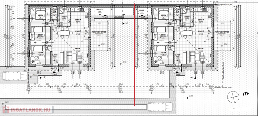 Minden ingatlan 90.39 nm + 15.36 nm terasz + tároló