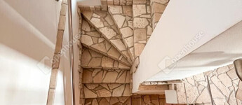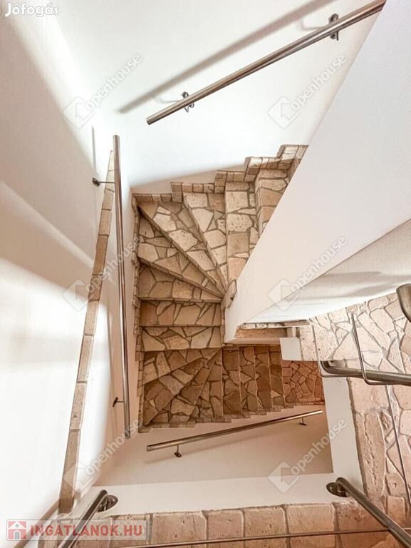 Terméskő díszítés: Az épület alsó részén és a bejárat környékén dekoratív terméskő burkolat található
