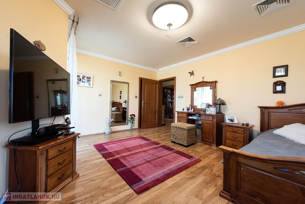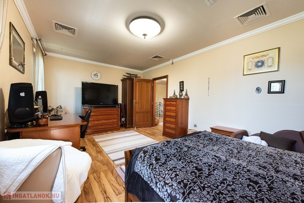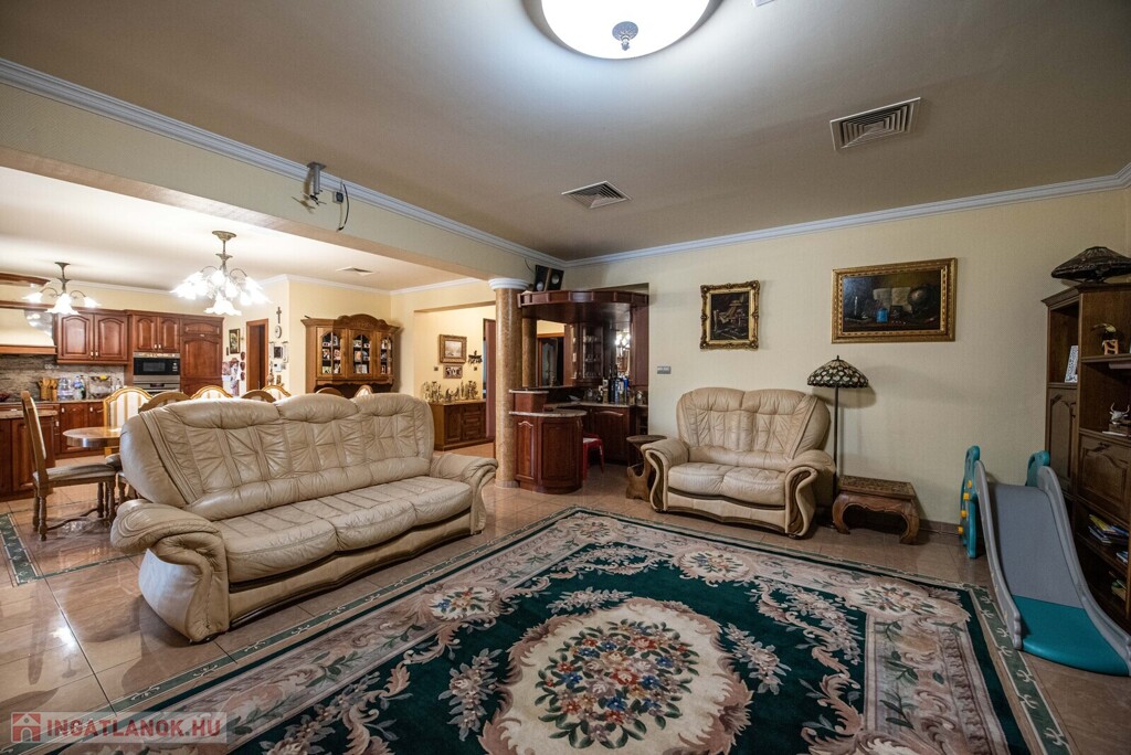 Nyíregyházán, Oros elején, minden igényt kielégítő, 620 nm összterületű, 2009-ben Ytongból épült, 4 szoba + tágas konyha étkező nappalival. Az ingatlan 2 szintes, alsó szintjén nappali, konyha, étkező, 1 hálószoba, 2 fürdő wc-vel, terasszal, felső szintjén 3 hálószoba, fürdőszoba, mellékhelyiséggel valamint egy gardrobe szoba található. járólap és laminált padló burkolatú, 2 db kondenzációs gázkazánnal és minden fő helységben klímával. Az ingatlanhoz tartozik egy 45 nm-es iroda helyiség, 40 nm-es konditerem, valamint egy 300nm-es zárt 6 x 20 m-es medence amelyet nyáron a napkollektor télen pedig gáz hőcserélős medencefűtés rendszer fűti. A továbbiakban 2 állásos garázzsal és 2 állásos autóbeállóval, prémium minőségű nyílászárók, 11.2 KW -os napelem rendszer, 3500 nm-es gyönyörűen parkosított telken, beépített öntözőrendszerrel, filagóriával családi ház eladó.Az ingatlan azonosítója: 97247Érdeklődni: +36702560693 Az ingatlan azonosítója: 97247 Érdeklődni: +36702560693