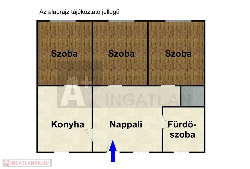 A 3 szoba külön bejáratú, megközelítőleg egyforma méretűek, kb14m2-esek.